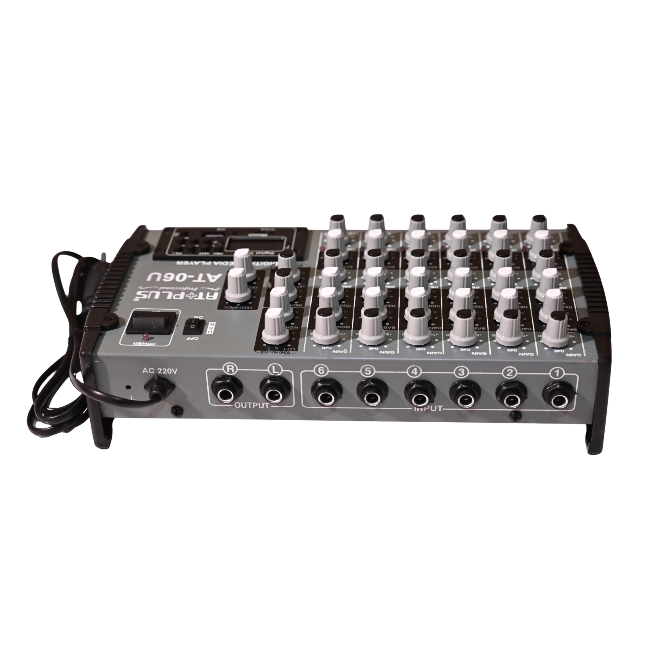 The AT-6U (USB/BT) is a versatile 6-channel audio mixer designed for both live and studio applications. It features 6 input channels—4 mono mic/line inputs and 1 stereo channel—giving you flexibility to handle multiple audio sources.